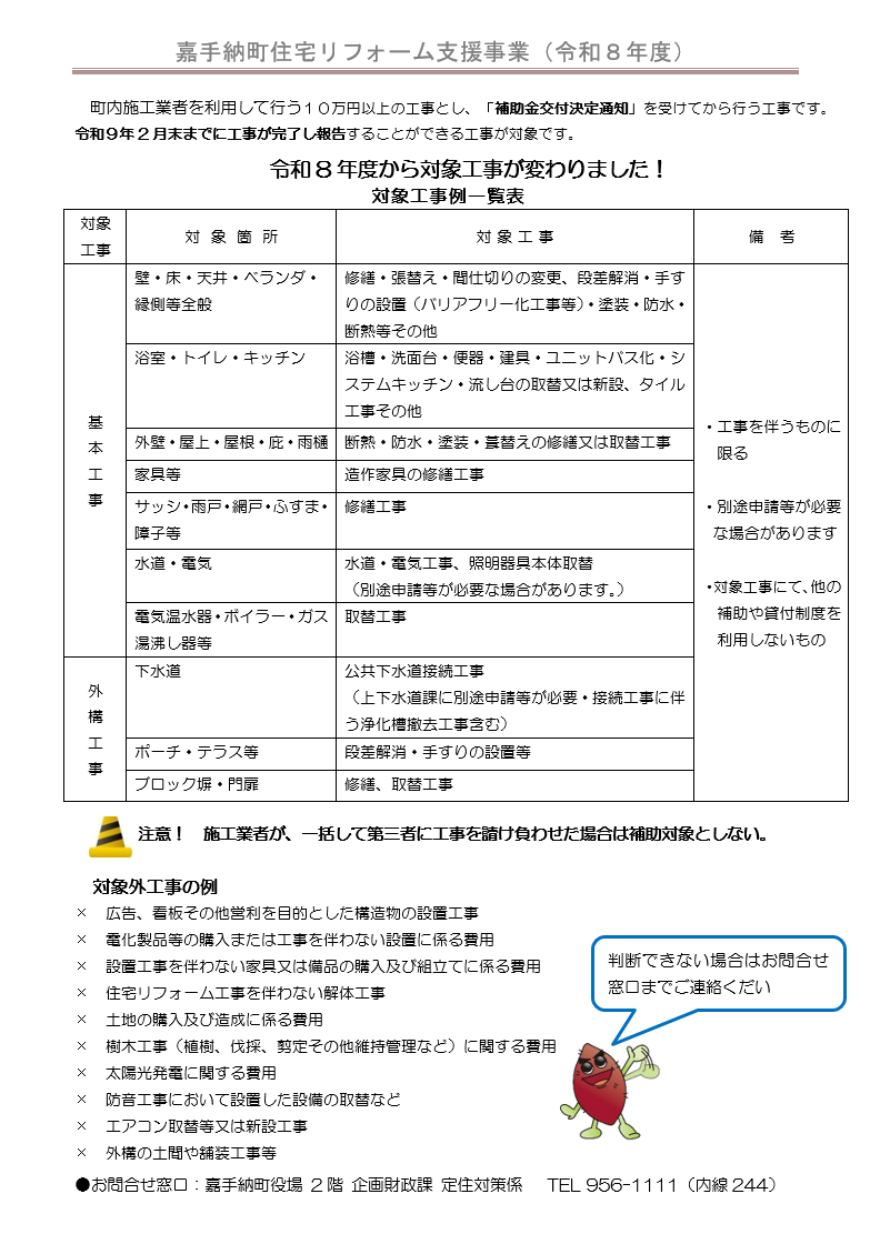 対象工事例一覧表はこちら👉【対象工事】2026 嘉手納町住宅リフォーム支援事業.pdf
